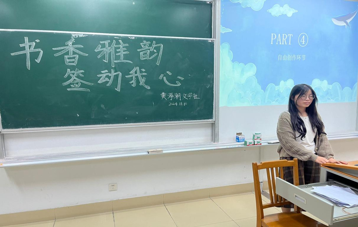 11月10日下午,黄海潮文学社举办“书香雅韵,签动我心”书签制作活动。同学们了解书签历史背景后,分享喜爱的诗词,并动手制作个性书签,在实践中感受文学与手作的乐趣。