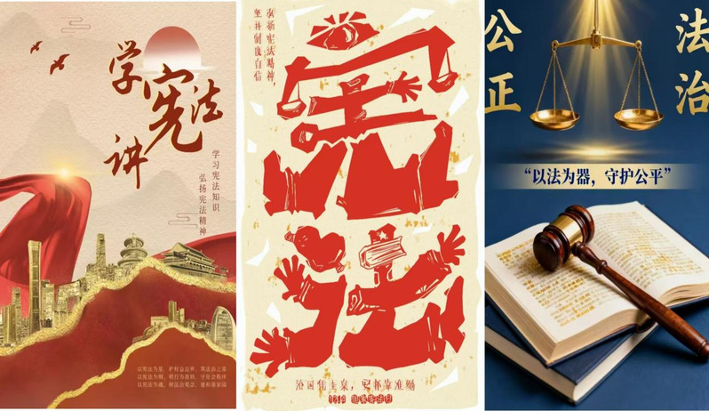 为深化学习效果,推动法治文化从“入脑”到“入心”,系列活动同步开展了“学宪法讲宪法”创意作品征集活动,为同学们提供了一个挥洒创意、诠释法治的广阔平台,激发学生的创作热情。同学们踊跃参与,围绕“学习法治宣传教育”“弘扬宪法精神”“携手共建法治社会”等主题,充分发挥专业特长和艺术想象力,创作出一批主题鲜明、设计新颖、富有感染力的视频和海报。这些作品不仅展现了文学院学子对法治精神的深刻理解,也以更具视觉冲击力和传播力的方式,让法治观念在校园内广泛传播。