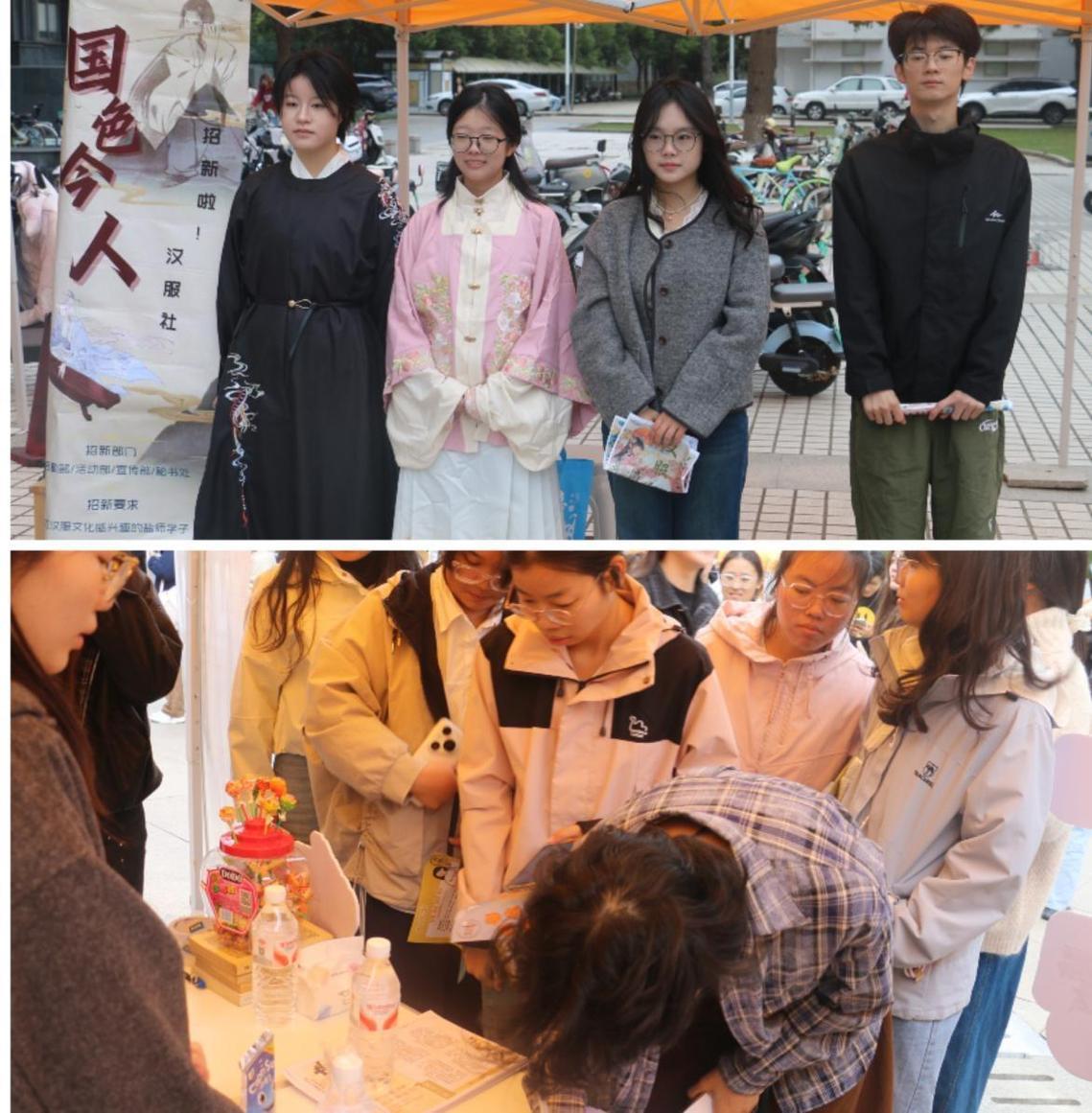 热烈的氛围中,新生们热情高涨,积极与社团成员交流互动。来自文学院2025级新生郭奕嘉在报名后坦言:“这场‘百团盛宴’让我感受到了文学院的文化活力,我已经加入国色今人汉服社,希望在这里不仅能结识志同道合的伙伴,更能在传统文华学习中丰富学识、提升素养,让大学生活更有厚度。”