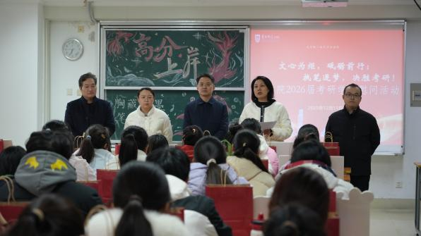 为鼓舞考研学子士气、传递学院关怀,12月11日下午,文学院举行2026届考研学子慰问交流会。学院领导班子全体成员到场,与即将奔赴考场的同学们面对面交流,送上真挚祝福与暖心支持。