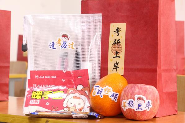 活动现场,学院精心为每位考研学子准备了“考研加油包”,其中包含补能食品与实用文具,寓意着学院对同学们辛勤努力的肯定与对大家金榜题名的美好祝愿。活动最后,师生合影留念,共同定格这份温暖与力量。
