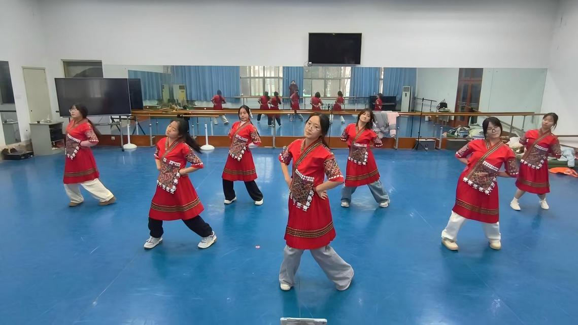 为响应大赛铸牢中华民族共同体意识的核心号召,文学院高度重视此次比赛,组建了一支由七名学子组成的参赛队伍。从舞蹈构思到编排落地,从动作打磨到情感表达,全体成员紧扣《中国梦最美丽》的作品内核,将中华儿女对民族复兴的憧憬、对美好生活的向往融入每一个舞姿。训练期间,学子们克服学业与排练的双重压力,利用课余时间反复抠细节、练配合,汗水浸透舞衣却始终热情不减,用坚持与专注诠释着对梦想的追求。