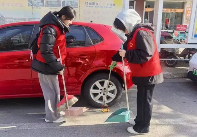 活动中,文学院的志愿者们化身“环境美容师”,手持扫帚、夹钳,分组对社区公共区域进行细致清扫。路面落叶、绿化带隐蔽处的垃圾、楼道角落的杂物,都被清理干净。一组志愿者弯着腰,仔细捡拾草丛深处的烟头纸屑;另一组志愿者负责清运装满的垃圾袋,往返于垃圾桶与清扫点之间。经过一下午的劳动,社区环境焕然一新。路过的老人纷纷驻足称赞,阳光斜斜洒落在街道,映照着志愿者们额头的汗珠,也映照着老人们欣慰的笑容。