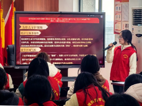 活动以“追忆初心—守护家园—礼赞榜样”为主线展开。盐电社区党委副书记吴灏首先致辞,勉励青年学子在志愿服务中传承雷锋精神。随后,我院志愿者从雷锋“出差一千里,好事做了一火车”的助人故事讲到“湿地女儿”徐秀娟为守护丹顶鹤献出生命的感人事迹。从雷锋“为人民服务”到徐秀娟“为湿地献身”,时代变迁,榜样更迭,但那份无私奉献的精神内核始终未变。