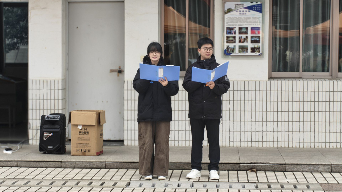 随后开展的“以诗为灯,释压前行”诗歌朗诵环节,则秉持“只放松、不评比,只治愈、不施压”的宗旨,引导同学们放下备考的紧张感,沉浸于诗歌的力量。同学们依次上台,朗诵精心准备的疗愈类诗歌,在声音与文字的流淌中暂时卸下压力,感受陪伴与温暖。朗诵结束后,工作人员为现场同学分发便签纸,邀请大家写下基于诗歌共鸣的心情感悟、治愈瞬间或自我鼓励的话语,并自愿粘贴到“心声感悟墙”上,共同留存了这份春日里的温暖与力量。