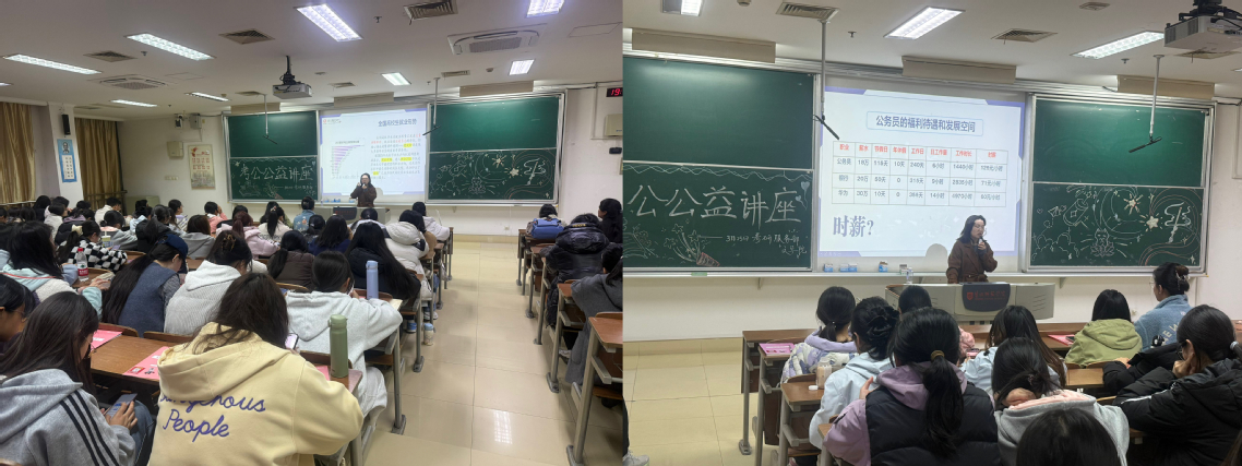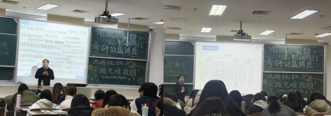 系列讲座兼顾考公与考研两大方向,精准贴合学子备考需求。考公相关讲解围绕大学生职业方向、公职考试核心价值与竞争格局、应届生备考优势展开,结合数据分析解读考情机遇,同步提供央国企备考、职位选报等专业指导;考研相关内容则聚焦备考全流程,结合文学类专业特点,围绕考研形势、院校选择、复习规划、跨考指导等核心问题,解析考试规律、梳理备考路径,细致解答学子在择校、复习、心态调整等方面的困惑。