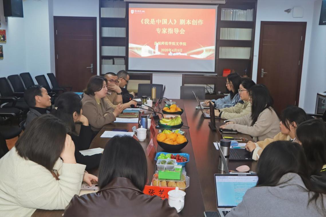 4月9日上午,文学院特邀著名剧作家陈明、盐城市文化馆馆长杨莺及曲艺编导季逢春开展《我是中国人》剧本创作指导,文学院院长李尧、副院长冯青青、播音与主持艺术专业教师张艺婕、创意写作班班主任任文贤及全体学员参加指导会。